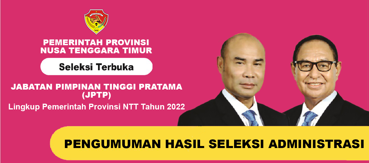 Untuk Pengumuman Hasil Seleksi Administrasi dapat dilihat pada link berikut ini : Pengumuman Hasil Seleksi Administrasi Seleksi Terbuka JPT Pratama Pemerintah Provinsi NTT Tahun 2022