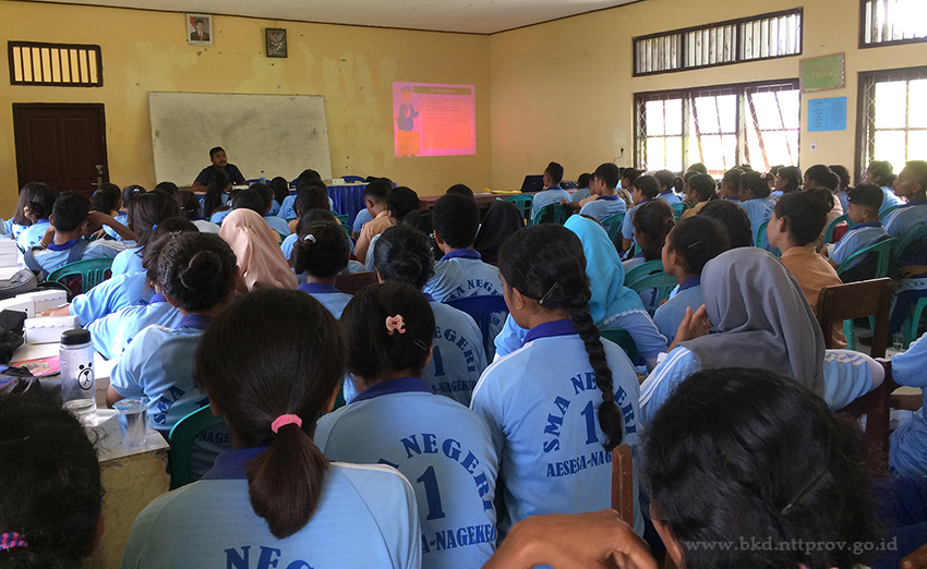 Badan Kepegawaian Daerah Provinsi NTT, Jumat (13/03/2020) bertempat pada di SMA Negeri 1 Aesesa Kabupaten Nagekeo melaksanakan kegiatan Sosialisasi Seleksi Pendaftaran Calon Praja Institut Pemerintahan Dalam Negeri (SPCP IPDN) dan sekolah kedinasan lainnya di Kabupaten Nagekeo dan diikuti oleh 150 siswa siswi.