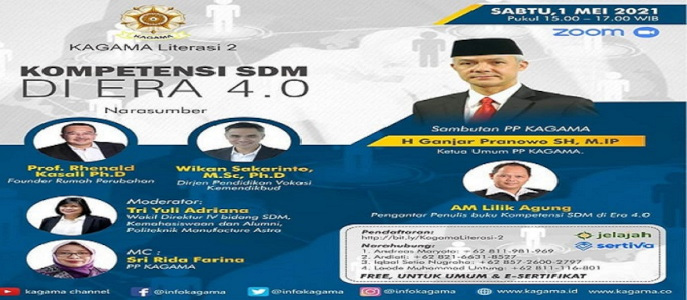 Selain menghadirkan penulis buku, webinar yang berlangsung lebih dari dua jam tersebut menghadirkan dua pembicara hebat, antara lain Prof. Rhenald Kasali, PhD (Founder Rumah Perubahan) dan Wikan Sakarinto, M,Sc, PhD (Dirjen Pendidikan Vokasi Kemendikbud). Webinar dibuka dengan pengantar singkat oleh Ganjar Pranowo (Gubernur Jawa Tengah yang sekaligus menjadi Ketua Umum KAGAMA).