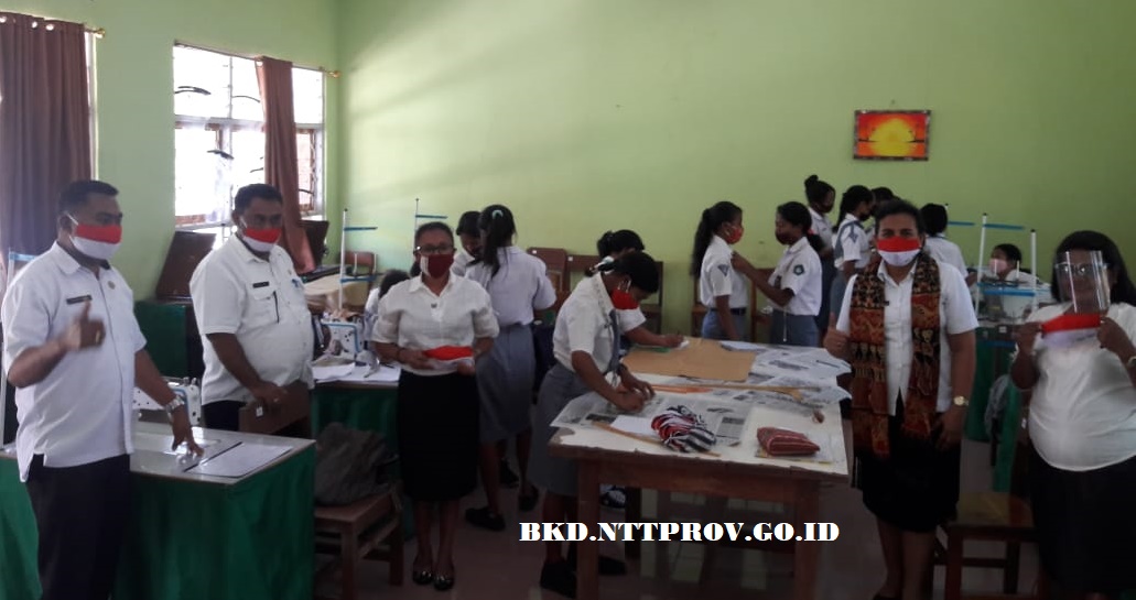 Kab. TTS, BKD.NTTPROV.GO.ID - Rabu, 26 Agustus 2020. Ketika memasuki SMK Negeri 2 Soe Kabupaten Timor Tengah Selatan, terlihat lingkungan sekolah yang hijau dan ditata dengan rapi. Ada tanaman hias, tanaman buah-buahan, tanaman kehutanan dan tanaman hortikultura. Kunjungan kerja Kepala Badan Kepegawaian Daerah Provinsi NTT ke SMK Negeri 2 Soe dalam situasi New Normal, sudah tampak aktivitas belajar mengajar dengan memperhatikan aturan-aturan yang berlaku sesuai peraturan tetap kesehatan. Kepala Sekolah SMK Negeri 2 Soe (Ayub S. P. Sanam, S.Pd) bersama guru-guru sedang melaksanakan proses pembelajaran tatap muka secara terbatas. Kepala Sekolah menjelaskan ada tujuh kompetensi di SMKN 2 Soe antara lain pekerja sosial, tata busana, adminstrasi perkantoran, teknik komputer&jaringan, perhotelan, teknik audio vidio, teknik energi surya hidro&angin.