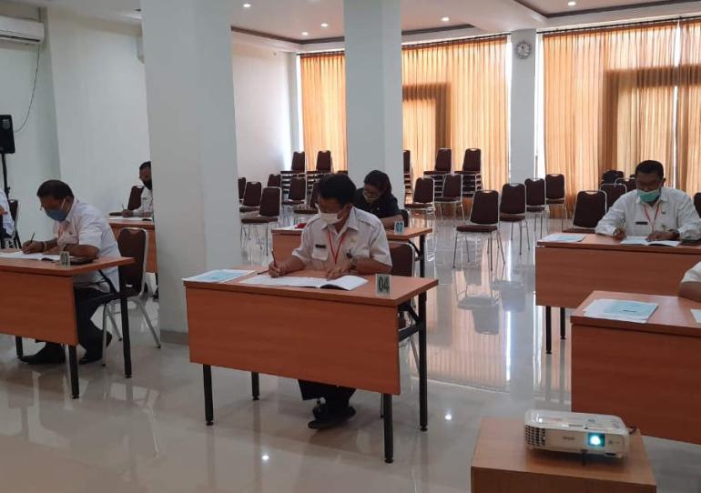 Waingapu, BKD.NTTPROV.GO.ID | Assessment Center Pemerintah Provinsi Nusa Tenggara Timur melaksanakan assessment yang pertama sejak masuk fase New Normal. Melalui Badan Kepegawaian Daerah Provinsi NTT, Pemerintah Provinsi NTT mengirimkan Tim Penilai Kompetensi Manajerial untuk melaksanakan assessment terhadap peserta seleksi terbuka Jabatan Pimpinan Tinggi Pratama Kabupaten Sumba Timur, terhitung mulai 27 Juni – 04 Juli 2019, di Waingapu.