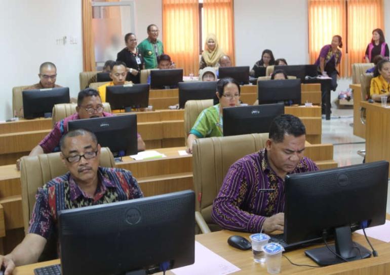 Kupang -bkd.nttprov.go.id- Seolah terdorong spirit āNTT bangkitā dan birokrasi yang harus āberlariā, hari pertama masa kerja Tahun 2019 Pemerintah Provinsi NTT langsung dibuka dengan pelaksanaan kegiatan Uji KompetensiĀ berbasis Camputer Assisted Test (CAT) bagi 1037 Pejabat Lingkup Pemerintah Provinsi NTT. Kegiatan ini Ā dilaksanakan pada tanggal (4/1) 2019 hingga (10/1) 2019 di Politeknik Negeri Kupang.