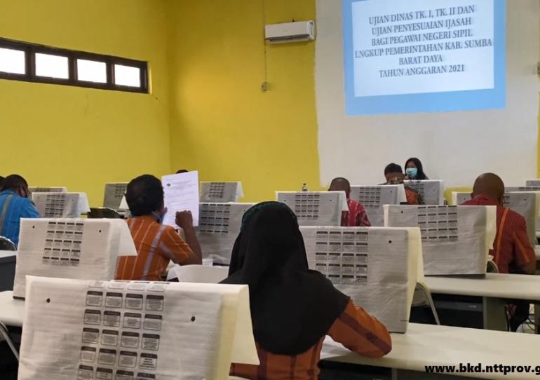 Ruteng, BKD.NTTPROV.GO.ID, Pemerintah Kabupaten Manggarai melalui Badan Kepegawaian dan Pengembangan Sumber Daya Manusia Daerah (BKPSDMD) menggelar pelaksanaan Ujian Dinas dan Ujian Kenaikan Pangkat Penyesuaian Ijazah selama 2 hari, sejak Rabu 21 April 2021 dan Kamis 22 April 2021 yang bertempat di Aula BKPSDMD Kabupaten Manggarai, di Ruteng.